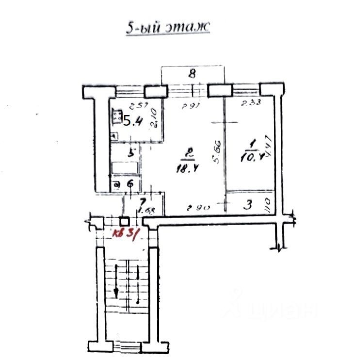 5,4 м²